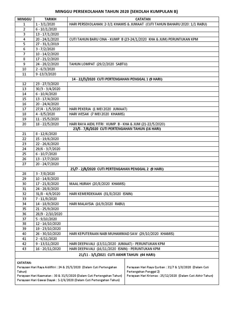 share dlu , nanti senang nak cari bila nak bukak sekolah nanti , hehe . Definisi pola bilangan matematika adalah susunan dari beberapa angka yang dapat membentuk pola. Kementerian pendidikan malaysia (kpm) atau ministry of education (moe) takwim persekolahan 2019 kumpulan b. Kpm telah menyediakan perancangan jadual persekolahan di seluruh negara setiap tahun termasuk pada tahun hadapan. Walaupun ada beberapa entry yang telah kakyong up kan dalam blog ni , still entry untuk kejadian 2019 belum ditulis. Johan pata gos iiid peringkat antarabangsa 2018. Sekolah showcase pendidikan kelestarian negeri johor 2019. Negeri perlis, pulau pinang, perak, selangor, negeri sembilan, melaka, pahang, sabah, sarawak, wilayah persekutuan kuala lumpur. Jadual persekolahan 2019 ini juga dibuat setelah mengambil kira beberapa perayaan besar negara iaitu hari raya aidilfitri, hari raya aidiladha, tahun baru cina, deepavali dan beberapa perayaan lain di sabah dan sarawak seperti hari gawai, hari kaamatan dan sebagainya. Create html5 flipbook from pdf to view on iphone, ipad and android devices. Minggu minggu persekolahan ini penting bagi guru merancang aktiviti ataupun kegiatan di sekolah sepanjang tahun 2020 nanti. Format dokumen ini adalah dalam 'pdf'. Takwim minggu persekolahan mengikut kumpulan.