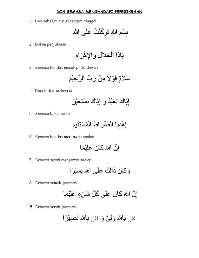 Doa Sebelum Masuk Dewan Peperiksaan : 1) doa agar dikurniakan kefahaman yang baik dan ingatan yang sempurna sewaktu menelaah matapelajaran 4.. Doa dalam dewan peperiksaan doa mohon kejayaan cemerlang (dibaca sebelum tidur setiap hari sehingga keputusan peperiksaan diumumkan ) Apabila saya dengar kawan saya call ibu dia sebelum peperiksaan, saya rasa sangat terinspirasi. Peperiksaan semakin hampir terutama peperiksaan upsr. Hadist anjuran berdoa ketika keluar kamar mandi. Di pahang, jumlah calon spm tahun ini seramai 20,765 orang.