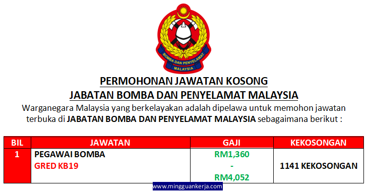 Cara Mengemukakan Permohonan Pegawai Bomba Gred Kb19 Dengan Sijil Spm Svm Spmv Dan Sijil from kerjaya.co We did not find results for: Maybe you would like to learn more about one of these? Check spelling or type a new query.